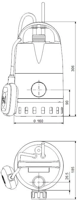 - Netz- und Schwimmerschalterkabel mit hermetischer Abdichtung zum Motor verstellbare Schaltpunkte über Schwimmerschalterfixierung am Griff