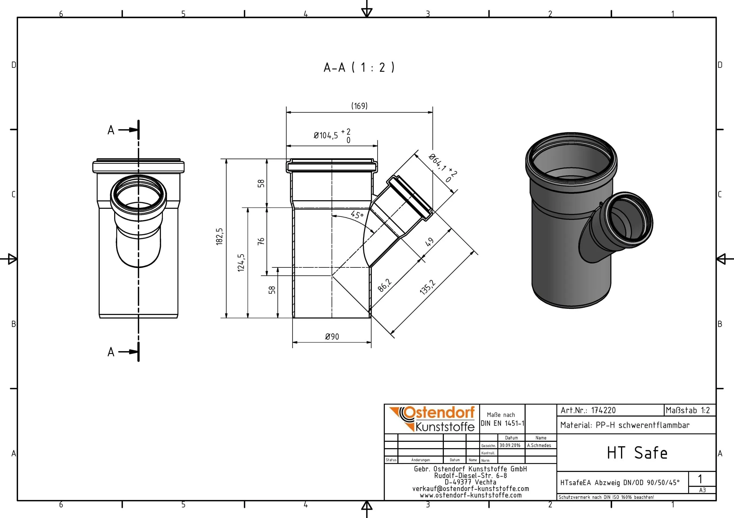 Ostendorf HTsafe HTsafe-Abzweig 174220 DN/OD 90/50×45°