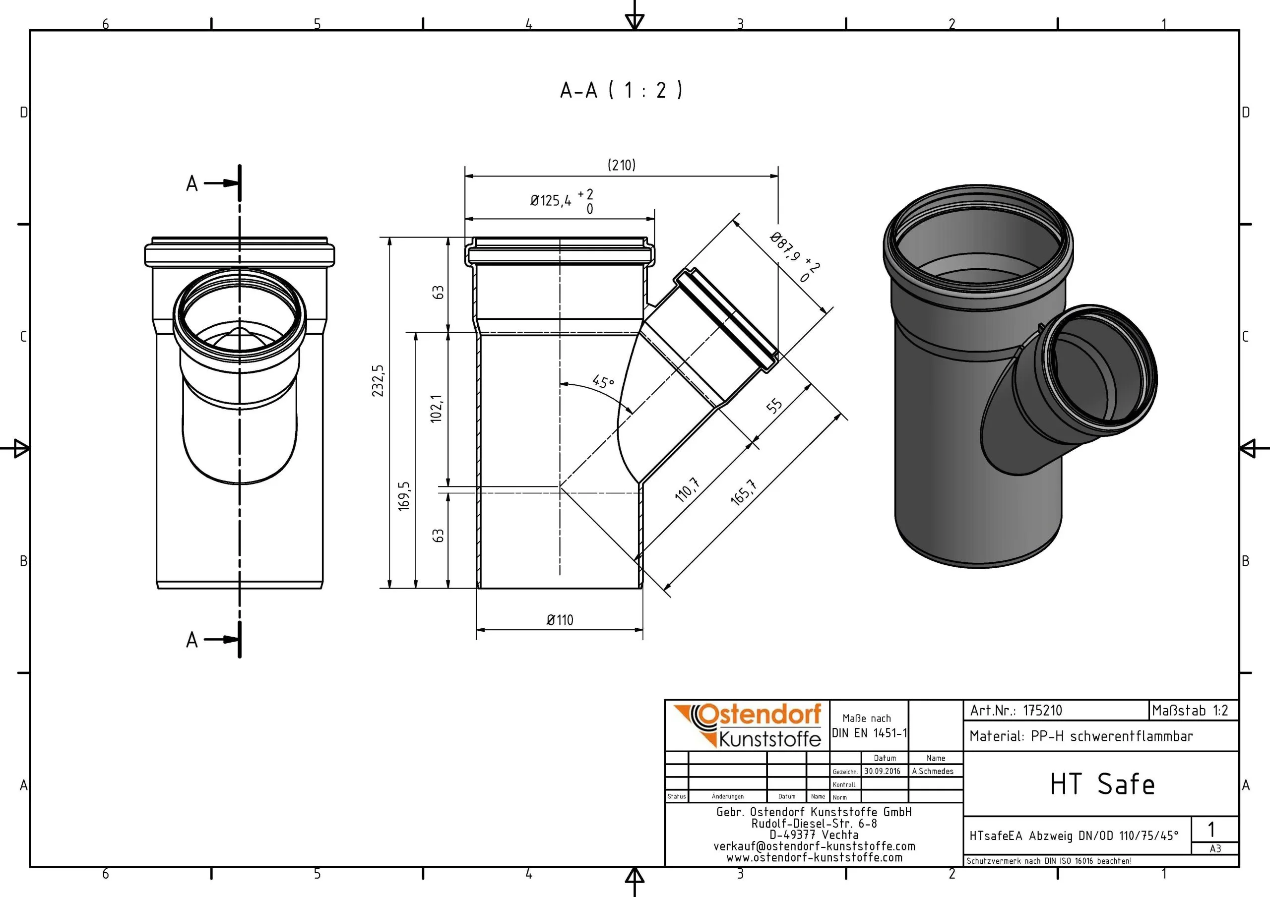 Ostendorf HTsafe HTsafe-Abzweig 175210 DN/OD 110/75×45°