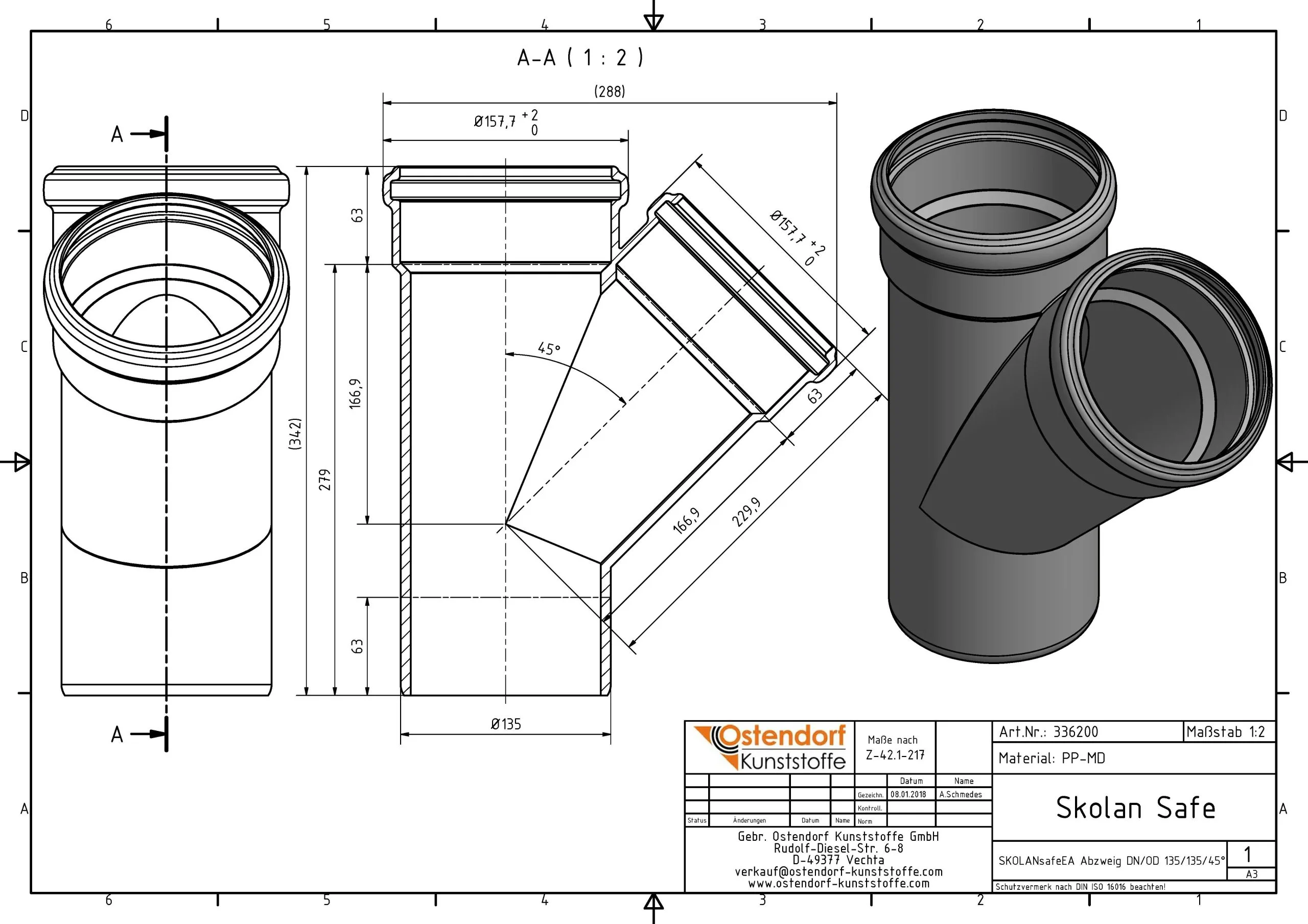 Ostendorf SKOLAN Safe SKOLANsafe-Abzweig 336200 DN/OD 135/135 X 45°