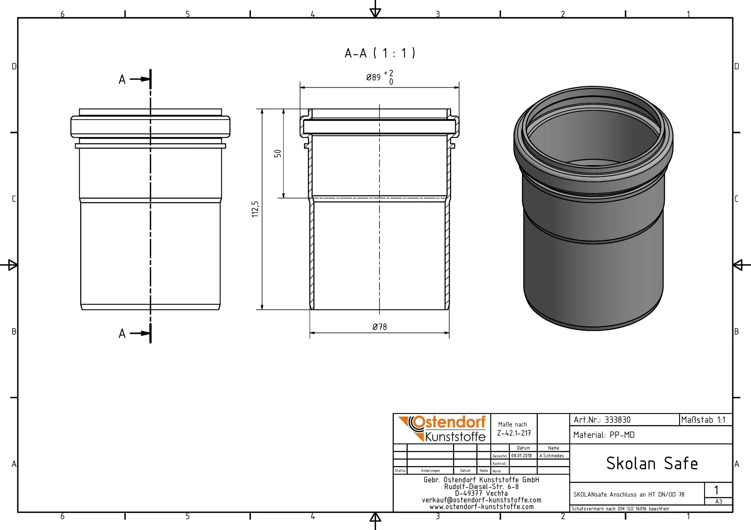 Ostendorf SKOLAN Safe SKOLANsafe-Anschluss 333830 Anschluss An HT-Safe, DN/OD 75