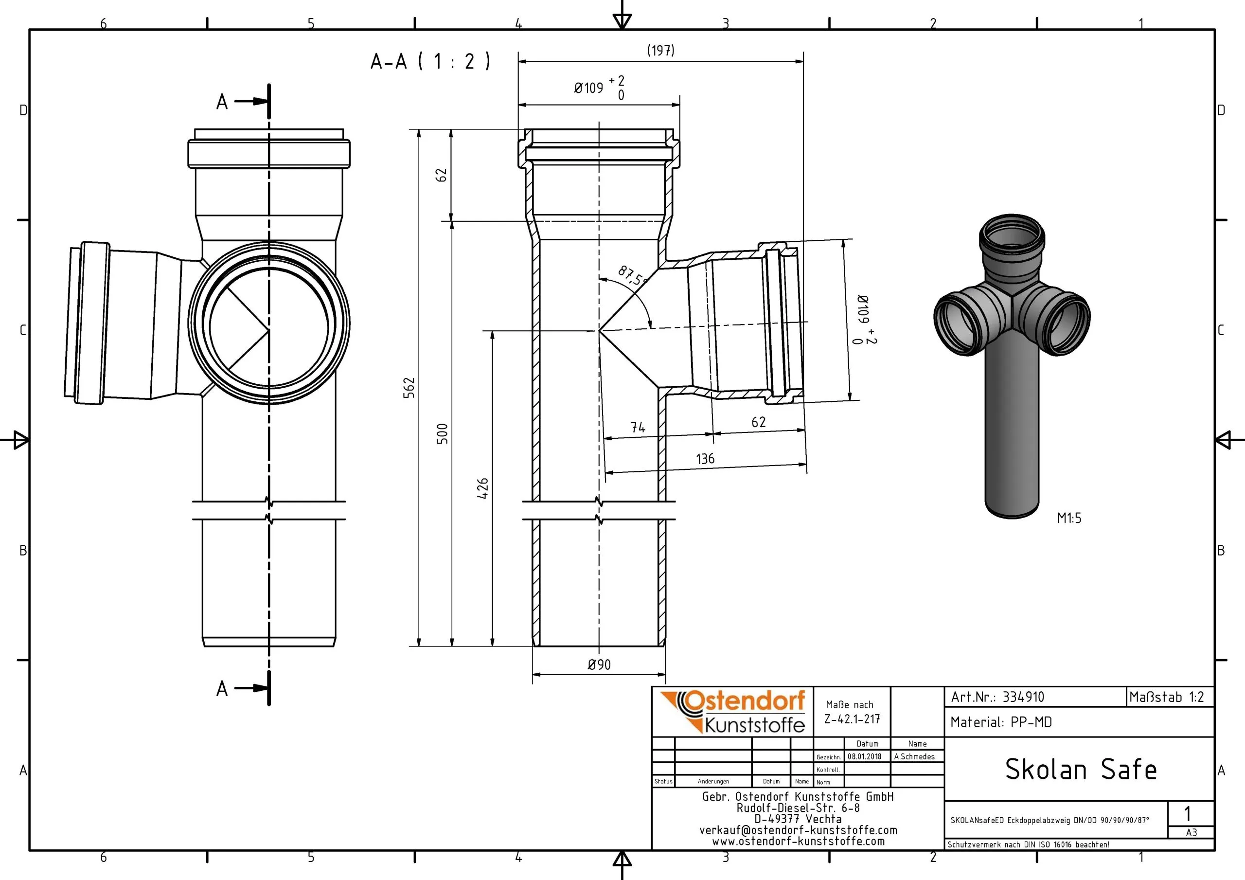 Ostendorf SKOLAN Safe SKOLANsafe-Eckdoppelabzweig 334910 DN 90/90/90 X 87,5°